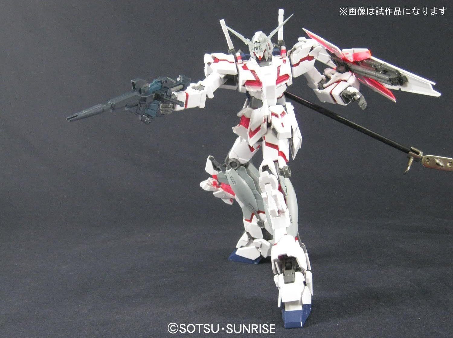To commemorate the release of the "Gundam Unicorn" animated movie Bandai has released this newer, better, most glorious MG Unicorn called the Unicorn Gundam HD Color + MS Cage! This isn't just a new paint scheme; Bandai have totally redone this kit. Check out these features! Fully transformable. New body color. Head redesigned, including vulcans, to match the animated version. An additional antenna for destroy mode. Mobility of the hips is now 360 degrees! MS Cage included that can store extra parts. MS Cage can be attached to the Action Base 1 (Action Base 1 not included) 1/100 figures: Audrey, Banagher, Cardeas, and Marida included! Included weapons are the Beam Magnum (with magazine), Hyper Bazooka, Shield, and Beam Saber. This kit features slightly darker armor color than the simultaneously released MG Unicorn Gundam. Scale: 1/100 Item Size/Weight: 59.2cm x 32.0cm x 11.5cm / 1400g Release Date: Mar 2010