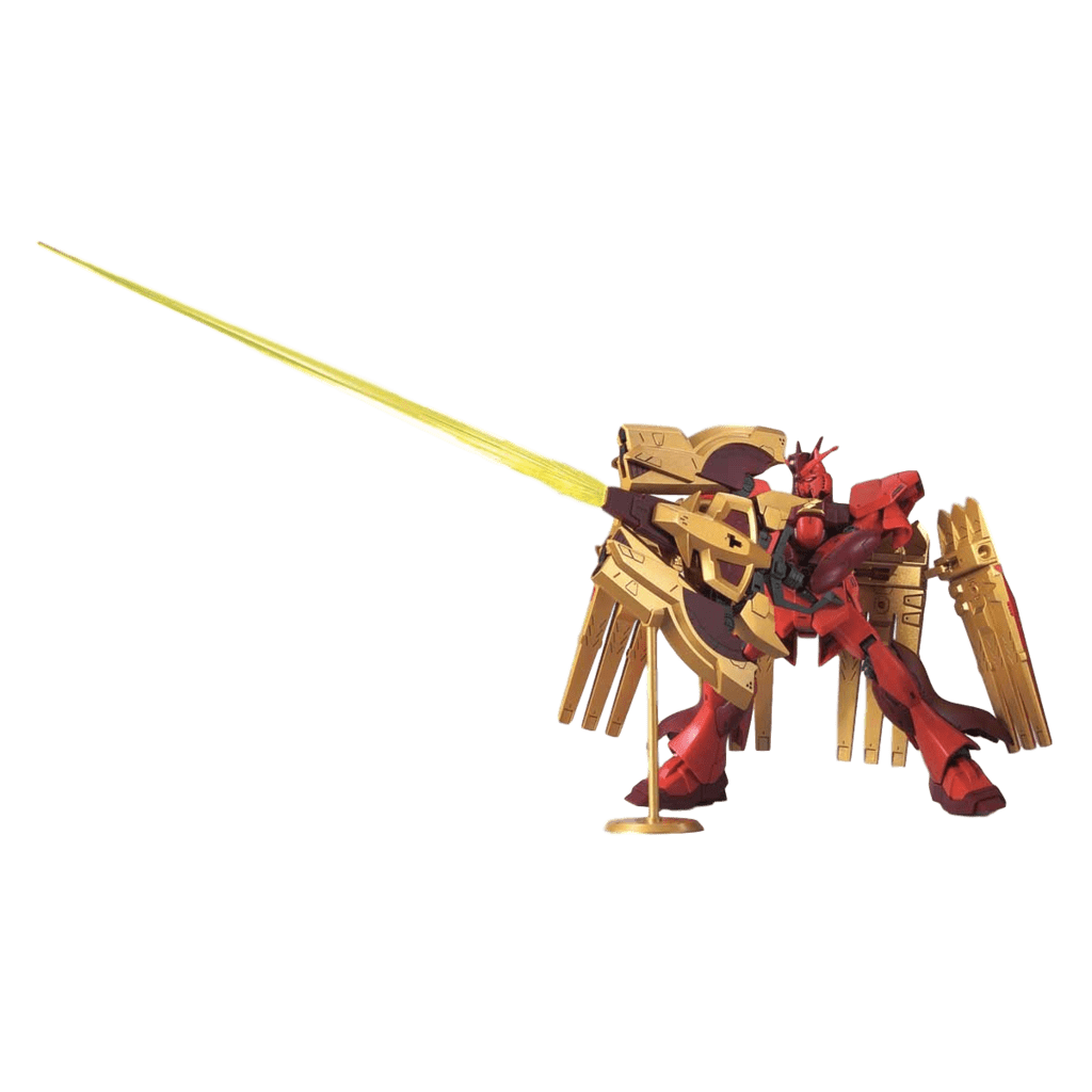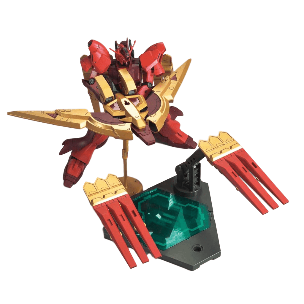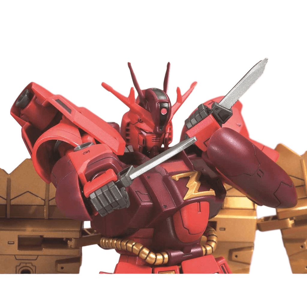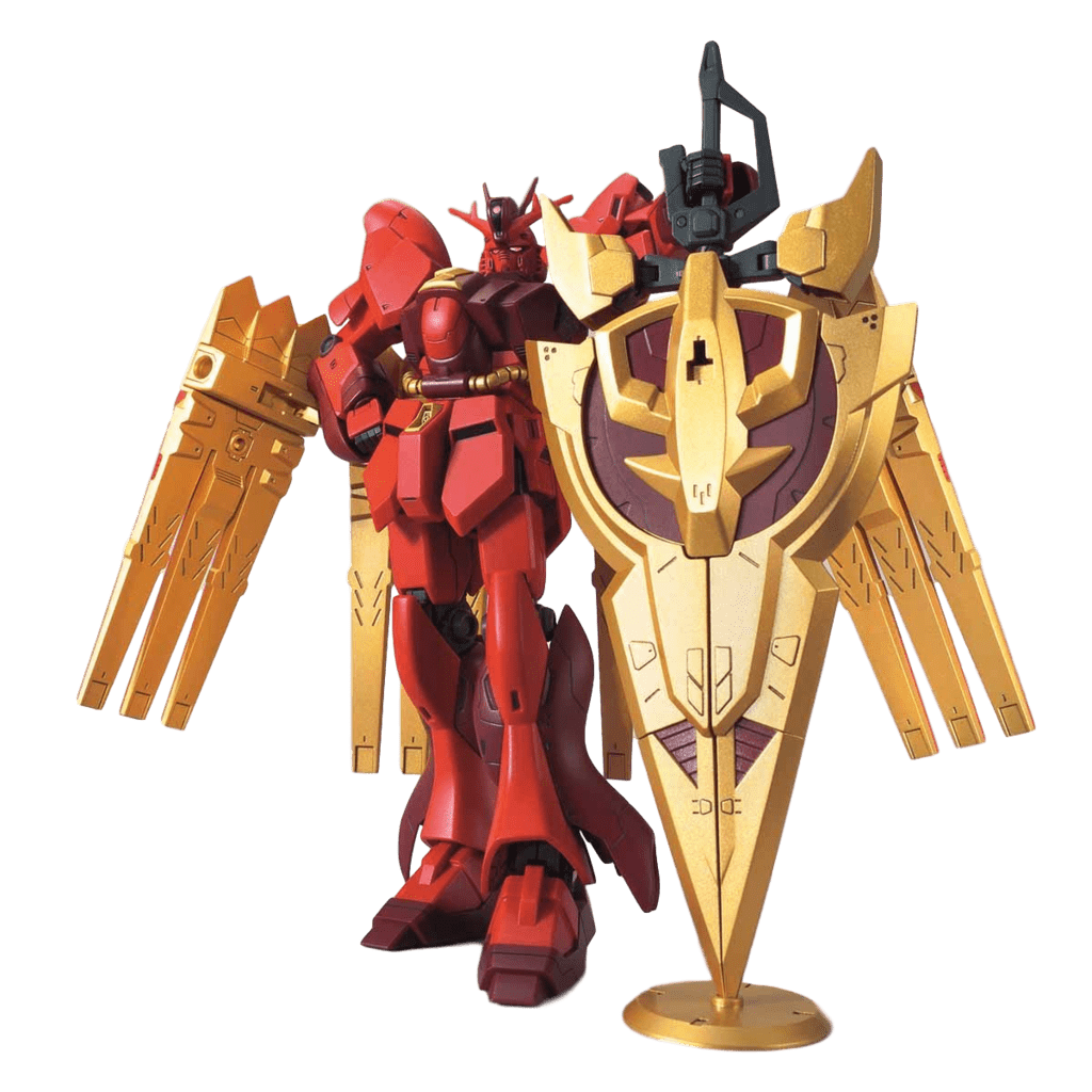 From "Gundam Build Diverse Re:RISE" comes the regal red and gold Nu-Zeon Gundam! He comes equipped with a cape thruster on his back and a massive Zeonic Sword, which can transform from normal mode to bowgun mode, and even beam sword mode. This one's sure to leave an impression in any Gunpla lineup! Includes: Zeonic Sword - Beam blade - Thruster Foil sticker sheet - Special base for the Zeonic Sword (other bases are sold separately). Scale: 1/144 Item Size/Weight: 31.0cm x 20.0cm x 11.3cm / 530g Release Date: Nov 2019
