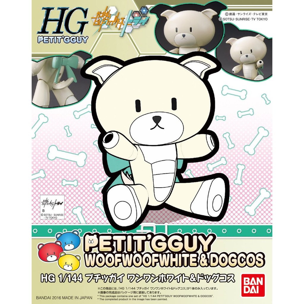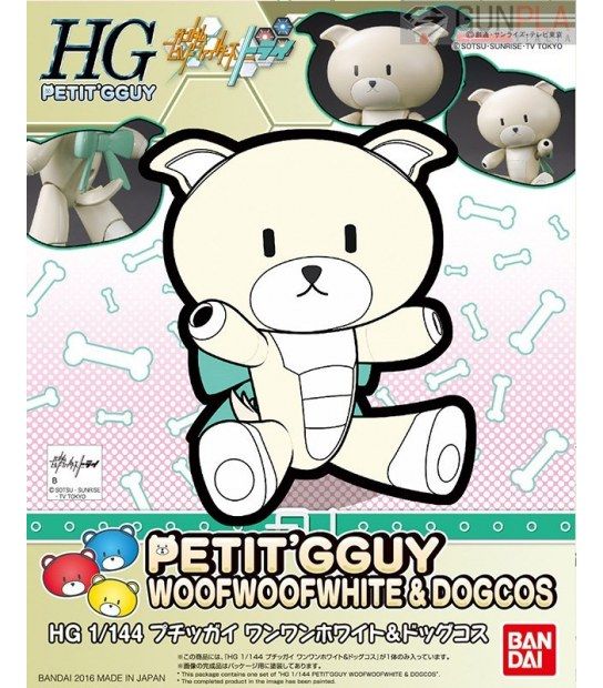 The lovable Petit'gguy is back with a new look! WanWan White includes the normal bear Petit'gguy parts, as well as optional ears, a tail and a mouth to dress him up like a dog! A display stand and sticker sheet are also included. Order today and expand your Petit'gguy family! Scale: 1/144 Item Size/Weight: 18.7cm x 15.0cm x 4.7cm / 100g Release Date: Dec 2016