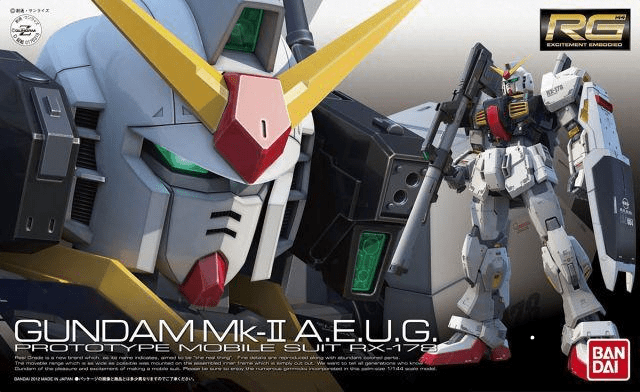 The AEUG version of the Real Grade RX-178 MkII is a fantastic kit and one of the easier Real Grades to assemble. Once completed the MkII is amazingly detailed and incredibly posable. It comes with a rifle, shield, bazooka, two beam sabers, vulcan pods and mesh pipe for use when assembling the legs and backpack. This kit is identical to the Titans Version (linked below), except it DOES NOT come with the extra Test Suit parts that are found in the Titans kit. Scale: 1/144 Item Size/Weight: 31.0cm x 19.0cm x 8.0cm / 410g Release Date: May 2012