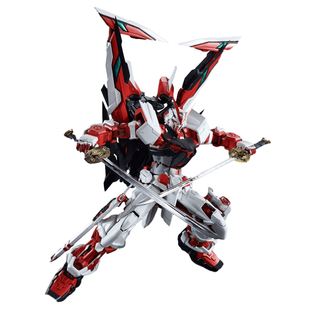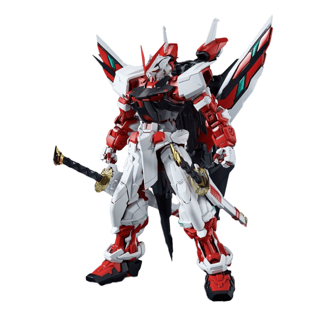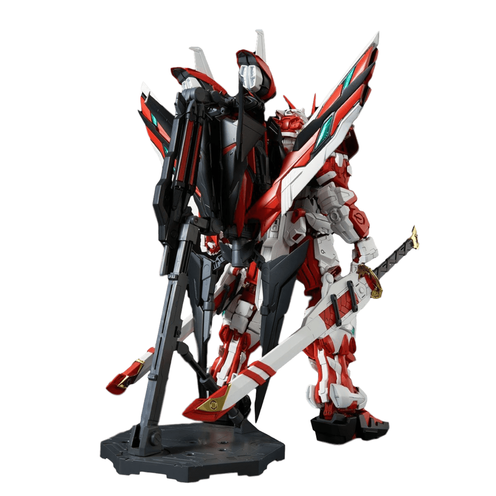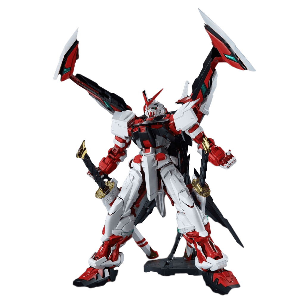The Gundam Astray Red Frame appears again in the Perfect Grade series, sporting its Tactical Arms II L accessory! An upgraded version, the Tactical Arms backpack can convert into multiple forms including neutral V-Form, Sword Form, Arrow Form, Delta Form, and Work Form! In keeping with the "Red Frame" designation, the movable frame around which the Perfect Grade series is designed is molded in red, with a completely articulated structure for exciting and flexible posing. Shoulder units can extend outward for expanded range of movement. Elbows feature multi-joint construction, allowing complex poses such as drawing the sword. Stomach unit features full articulation, including "hydraulic" cylinders. Knee armor designed to move along with poses. Calf frame extends and retracts. Battery-powered light-emitting diode (LED) system can be switched on to illuminate the eyes. The Red Frame Kai's other signature weapons, the "Gerbera Straight" and "Tiger Pierce" swords, feature separate blade, guard, and pommel construction just like real swords. Blade portion is chromed plastic for a realistic finish, and features engraving on the lower part of the blade. Guard and pommel-end are gold chromed plastic with detailed sculpting. Blade is designed so as to be fastened in the pommel with rivets. Product Features: Made of plastic - Tactical Arms backpack can convert into multiple forms - Completely articulated structure for exciting and flexible posing - Elbows feature multi-joint construction - Battery-powered light-emitting diode (LED) system (CR1220 battery for LED sold separately). Box Contents - Pieces to build - Gundam Astray Red Frame Kai - Gerbera Straight sword - Tiger Pierce sword - Beam torch - Action Base. Scale: 1/60