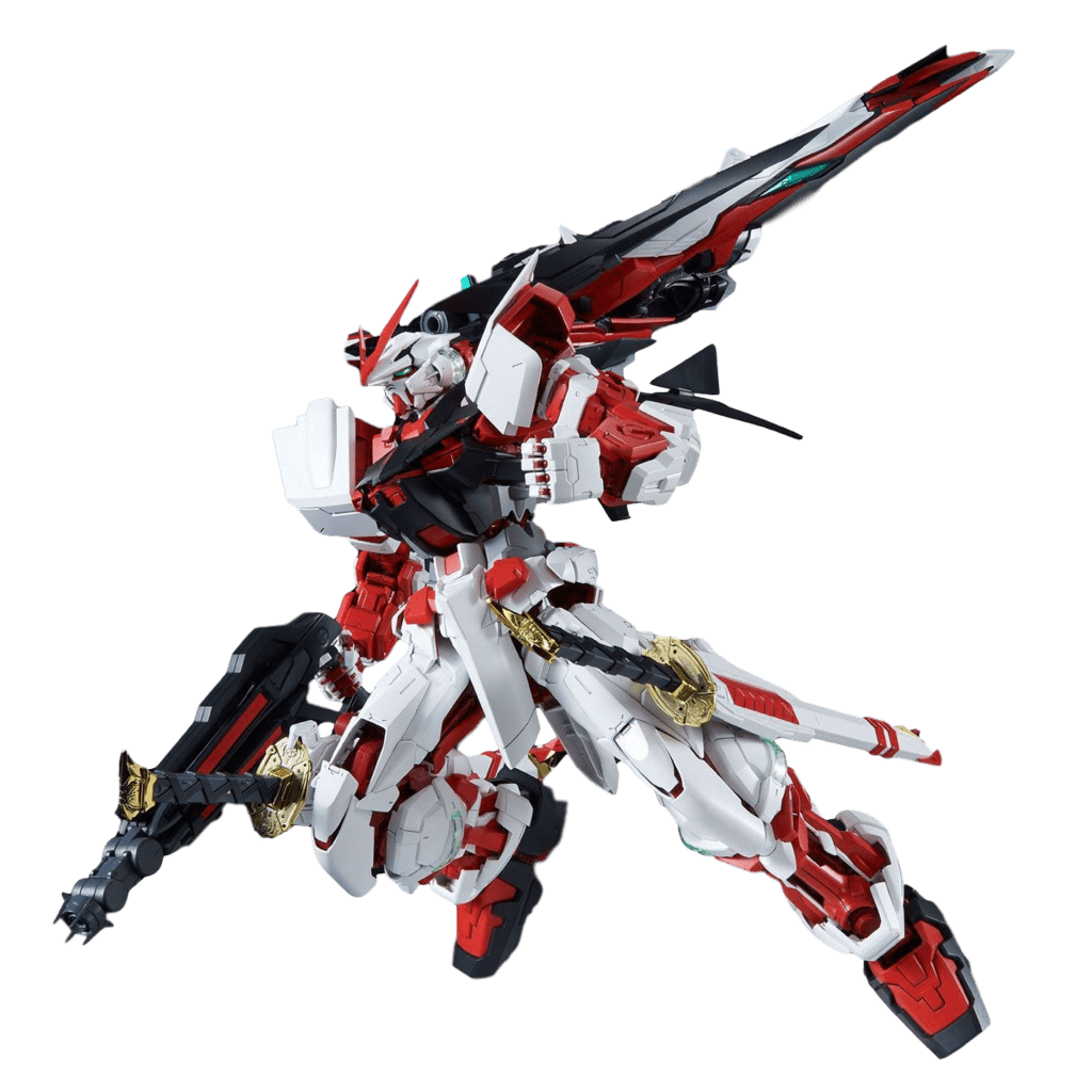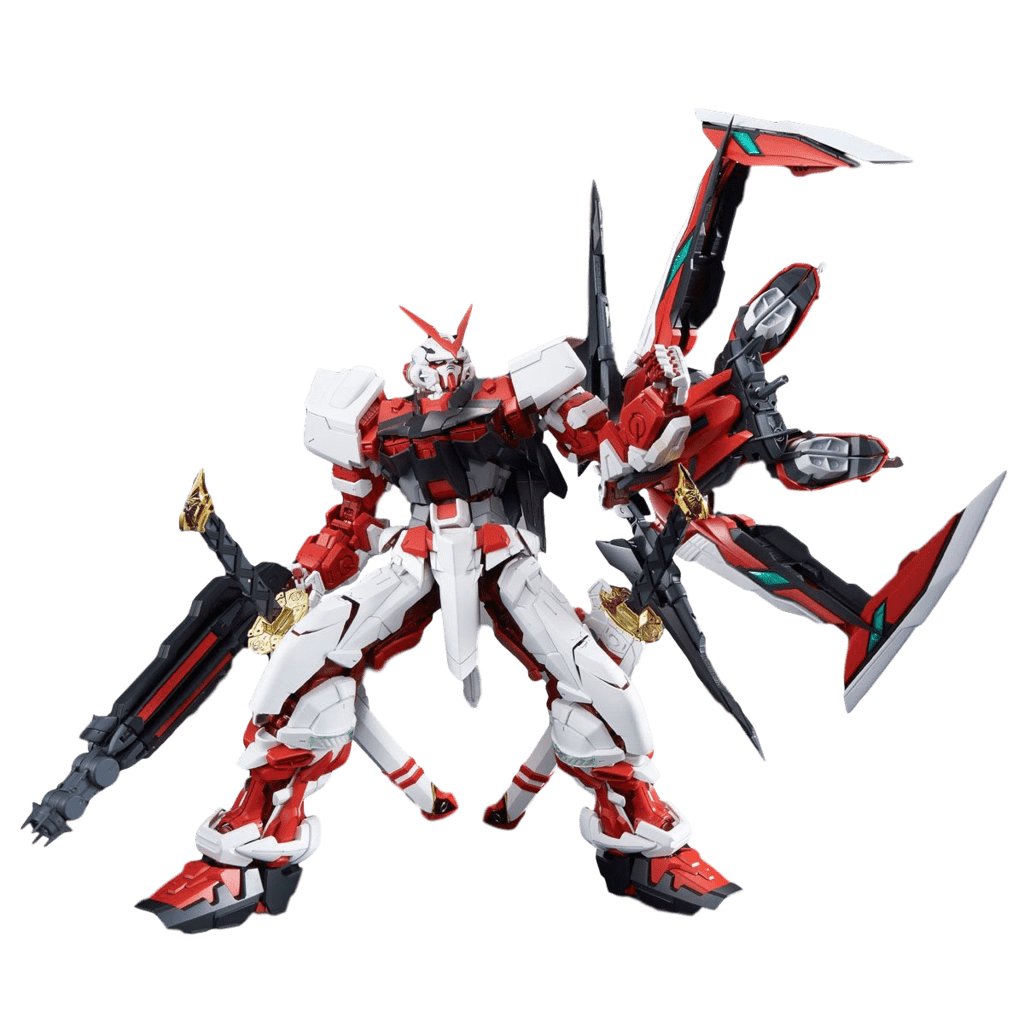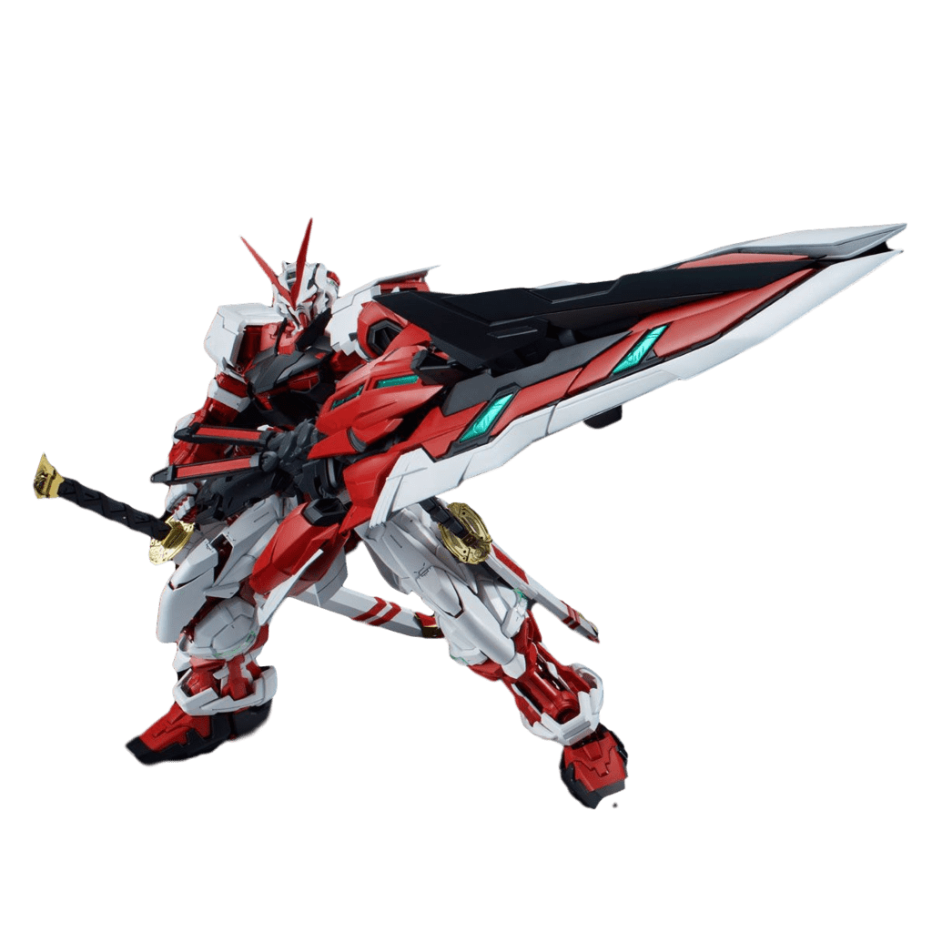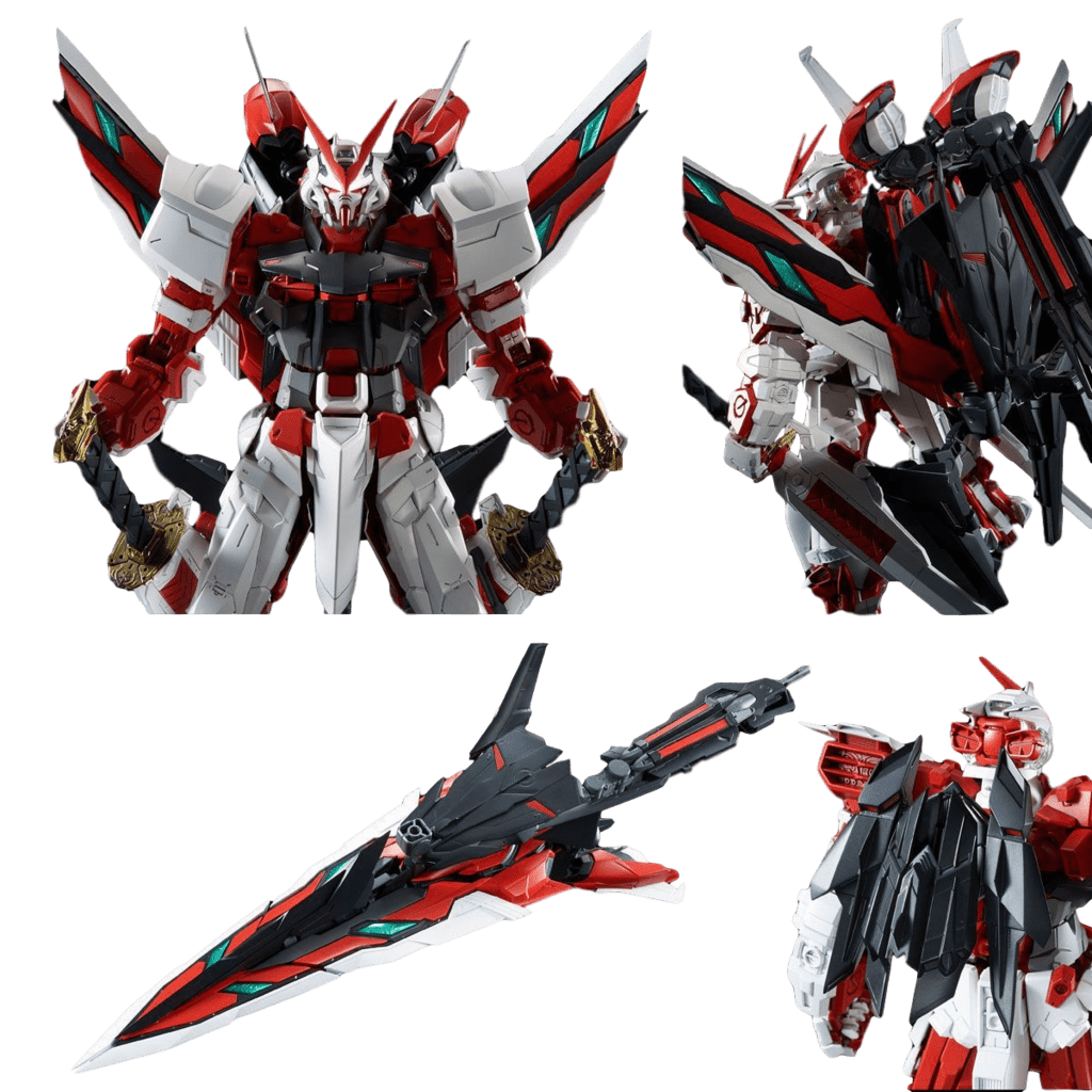 The Gundam Astray Red Frame appears again in the Perfect Grade series, sporting its Tactical Arms II L accessory! An upgraded version, the Tactical Arms backpack can convert into multiple forms including neutral V-Form, Sword Form, Arrow Form, Delta Form, and Work Form! In keeping with the "Red Frame" designation, the movable frame around which the Perfect Grade series is designed is molded in red, with a completely articulated structure for exciting and flexible posing. Shoulder units can extend outward for expanded range of movement. Elbows feature multi-joint construction, allowing complex poses such as drawing the sword. Stomach unit features full articulation, including "hydraulic" cylinders. Knee armor designed to move along with poses. Calf frame extends and retracts. Battery-powered light-emitting diode (LED) system can be switched on to illuminate the eyes. The Red Frame Kai's other signature weapons, the "Gerbera Straight" and "Tiger Pierce" swords, feature separate blade, guard, and pommel construction just like real swords. Blade portion is chromed plastic for a realistic finish, and features engraving on the lower part of the blade. Guard and pommel-end are gold chromed plastic with detailed sculpting. Blade is designed so as to be fastened in the pommel with rivets. Product Features: Made of plastic - Tactical Arms backpack can convert into multiple forms - Completely articulated structure for exciting and flexible posing - Elbows feature multi-joint construction - Battery-powered light-emitting diode (LED) system (CR1220 battery for LED sold separately). Box Contents - Pieces to build - Gundam Astray Red Frame Kai - Gerbera Straight sword - Tiger Pierce sword - Beam torch - Action Base. Scale: 1/60
