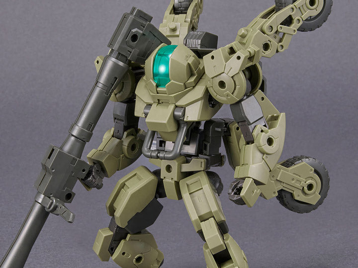 This new aircraft can convert into a "quad bike" form. The deformation process is equipped with a locking mechanism to stabilize the silhouette after the deformation. Intermediate forms between humanoid and vehicle types can be expressed by customization arrangement. The model kit comes with a bazooka. Customization with existing 30MM aircrafts and optional parts is also possible.