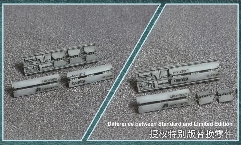 The Iwata Exclusive version includes extra parts featuring the Iwata logo.