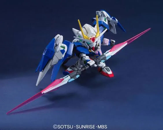 A BB Senshi version of the 00 Raiser with original features for added play value. Not only can the O-Raiser and 00 Gundam be docked - they can also be formed into all-new BB Senshi original modes, including Bird Mode, Fighter Mode, and Rider Mode. GN Sword II includes effect parts for beam saber mode. Includes 2 GN Swords and 2 GN Shield II units.