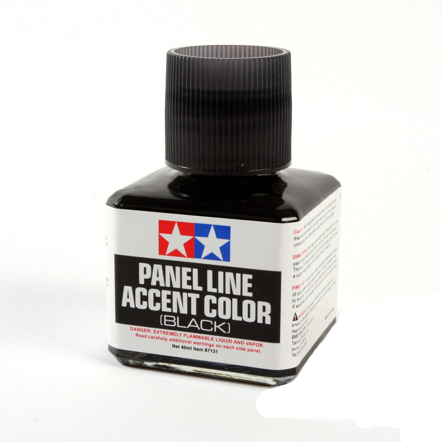 Tamiya Panel Line enamel paints are ideal for highlighting panel lines and other details to give your model a more realistic depth. The paint has been pre-diluted into the ideal viscosity and can be easily applied into crevasses such as panel lines with the brush on the bottle cap. Once dried, any excess may be cleaned up by using enamel thinner. (Bottle contains 40ml) Examples of use: Black is a general-purpose color and can be used for any type of model. Brown is great for military models as well as highlighting details on bright colors such as Yellow or Orange. Gray is perfect for White or Light Gray parts where Black may be too distinct. Note: Plastic parts may become brittle when using Tamiya Panel Line accent colors. Avoid using on movable parts and take care when applying to load-bearing areas. Apply over base coat of lacquer or acrylic paint. Accent Color paints may damage underlying base coat. Test before applying it onto the model. Take care when applying on flat base coat colors as Accent Color paints may permeate more readily.