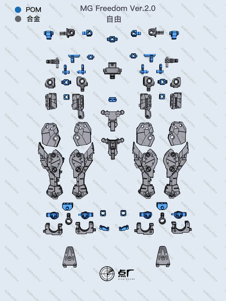 Dot Studio MG 1/100 Freedom Gundam 2.0/Justice/Providence Frame Replacement Metal Parts
