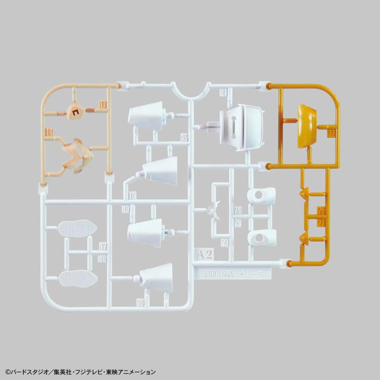 From Dragon Ball Super, Vegeta is the third Entry Grade model kit and can be built in his Super Saiyan God Super Saiyan form. Easy and fun to build, Entry Grade products are designed for ages 8 and up and require no tools, glue, or paint!