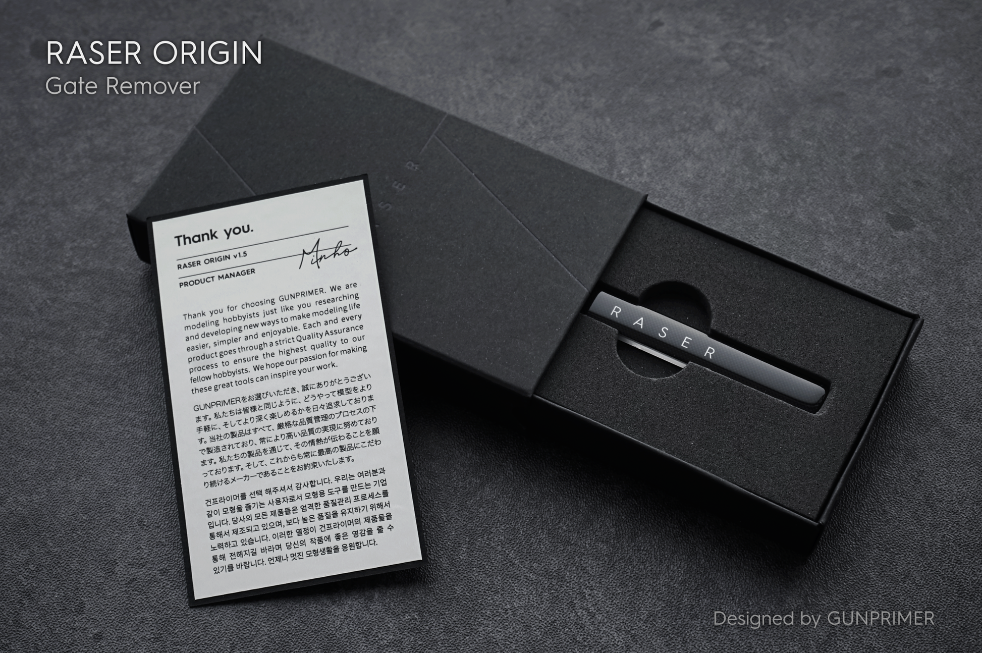 RASER ORIGIN specializes in gate(nub marks) removal using its proprietary Super-Nano Technology, which provides sanding experience powerfully, yet it leaves no scratches on the surface. Its tool for complete gate(nub marks) removal.