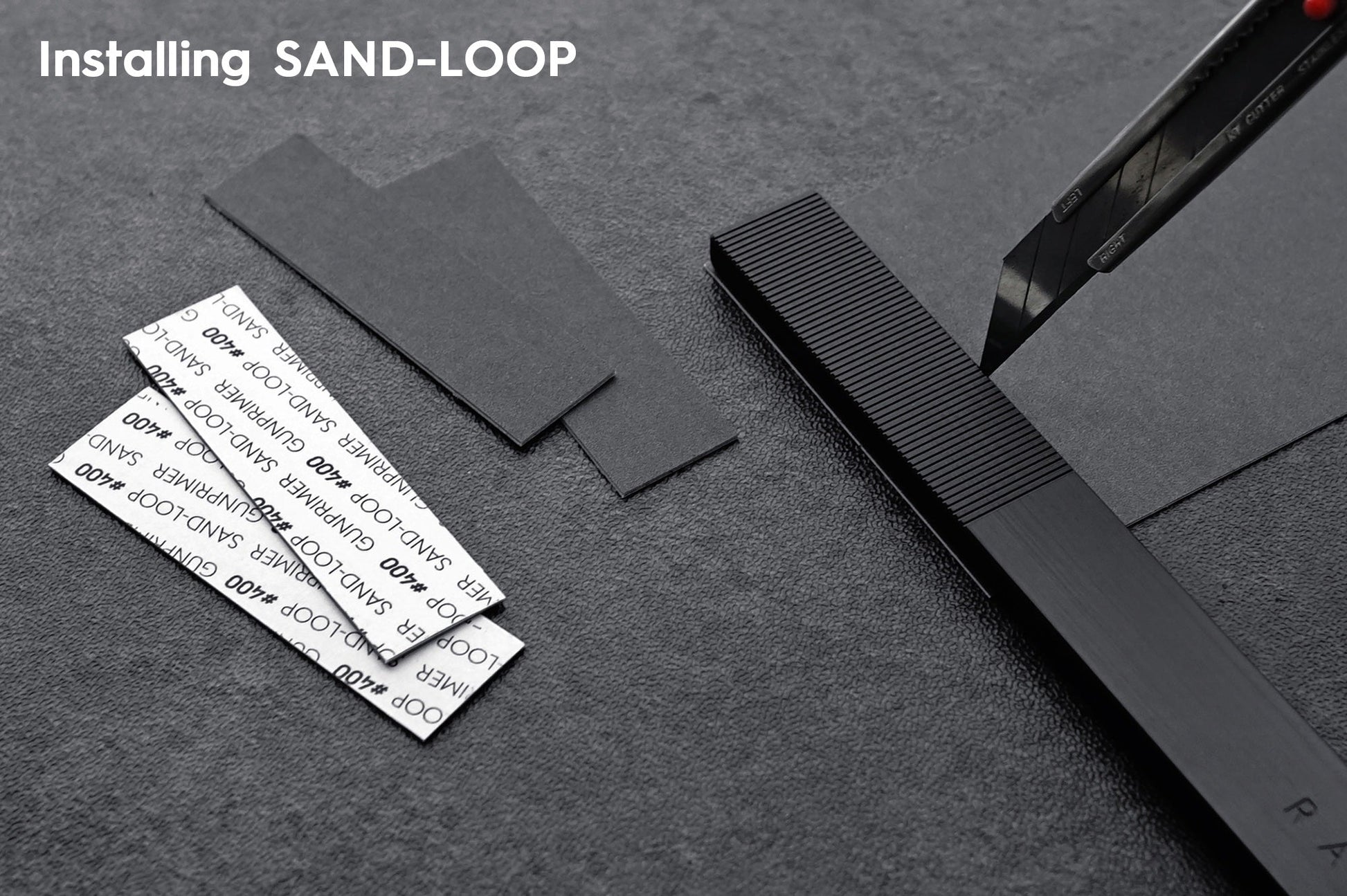 Place RASER THE BLACK on top of a SAND-LOOP (rough side up) of desired grit.