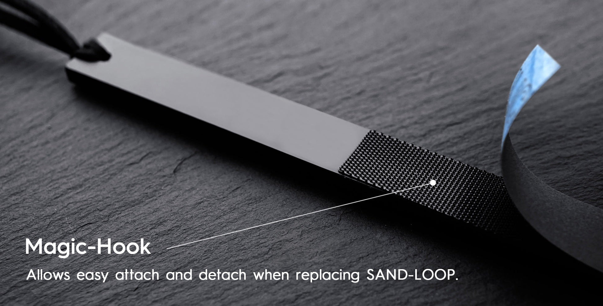 Magic-hook system secures the SAND-LOOP in place and allows easier attachment and detachment when replacing it. Unlike any other conventional products, it detaches easily and does not leave any adhesives.