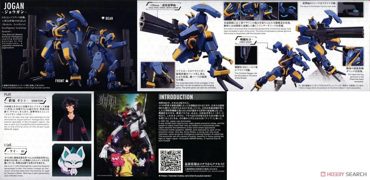 From the Kyoukai Senki anime series comes a 1/72 scale model kit of AMAIM (MAILeS JOGAN). This highly detailed model kit comes with a 120mm Double Barrel Sniper Cannon and a Combat Tanto. The accurate design and poseability of the completed figure allow you to recreate scenes from the anime.