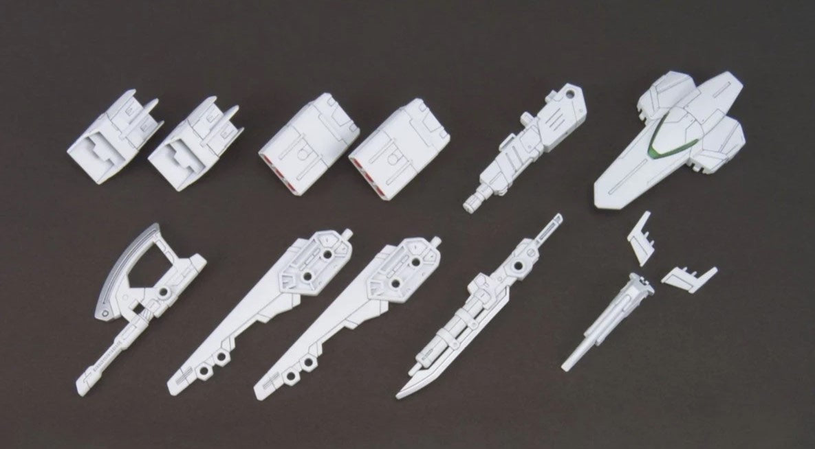 Another weapon accessory pack for customizing your own 1/144 Gunpla is the Gunpla Battle Arm Arms. This item includes both various joints of different sizes and many weapons including sword, axe, 2 boosters, 2 missile launchers, 2 stabilizers, waist armor, shield, 2 intakes.