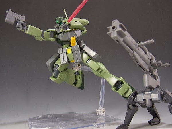 Modified GM Sniper II Custom from "Gundam 0080" used in Gundam Build Fighters. Features a unique Beam Sniper Rifle that can transform into a quadruped with a detachable shuttle. Also includes 2 beam pistols, knife and moving battery. Runner x12, sticker x1, Instruction Manual x1.