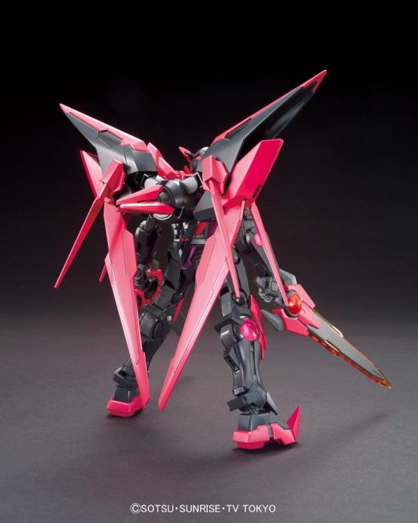 Based on the Gundam Build Fighters series, this evil version of the Gundam Exia is in 1/144 scale and becomes a fully articulated figure once built. The model kit uses the original HG Exia R2 to create a heavy combat use design.