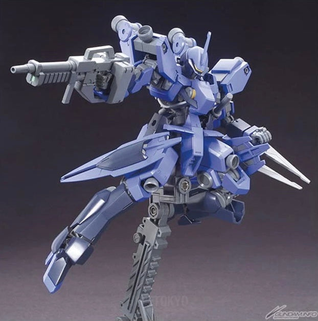 One of the units used by Gjallarhorn to defend Earth in animated TV series Gundam Iron-Blooded Orphans. It features different armaments that can be interchanged with other HG kits and also includes 2 head designs to choose between regular and captain unit, as well as opening head gimmick. Weapons on this version include battle axe and rifle. Runner x 6, sticker x 1, Instruction Manual x1