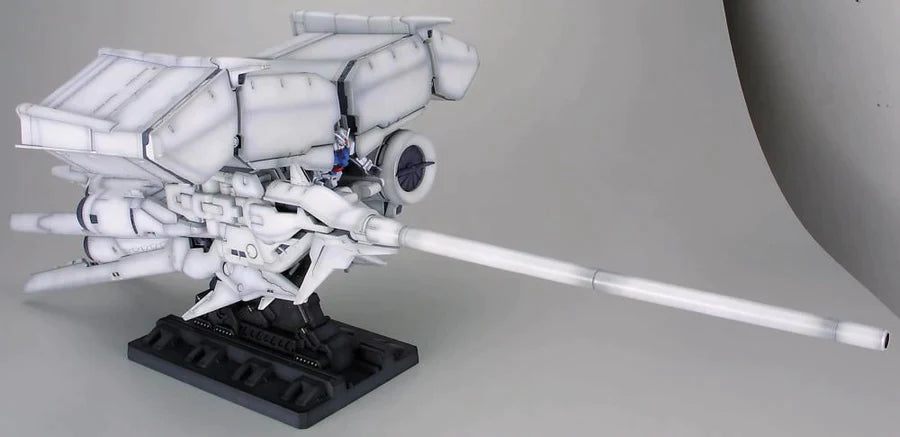 The massive weapons platform featured in Gundam 0083 Stardust Memory has been faithfully reproduced as a 1/144 scale model kit. With a length of 3 Feet and width of almost 2 feet, this monstrous model features unrivaled detail and mechanisms comparable to the highly regarded Perfect Grade series, and is even larger. A small amount of die-cast is integrated in the construction of the fuselage to provide the model kit stability, while screws hold various sections together.
