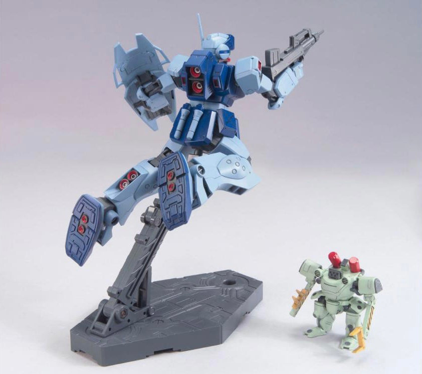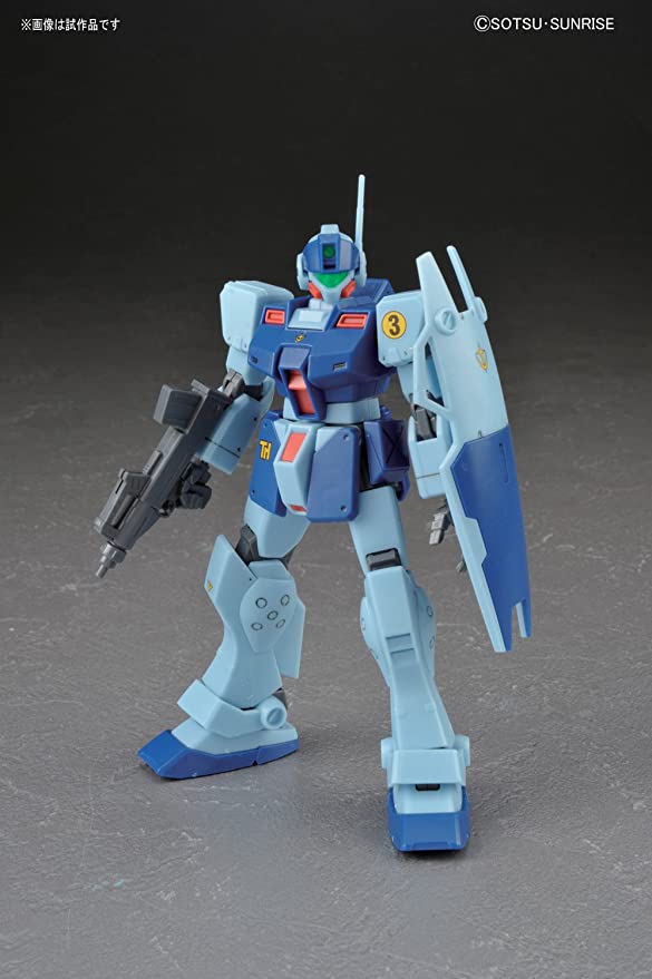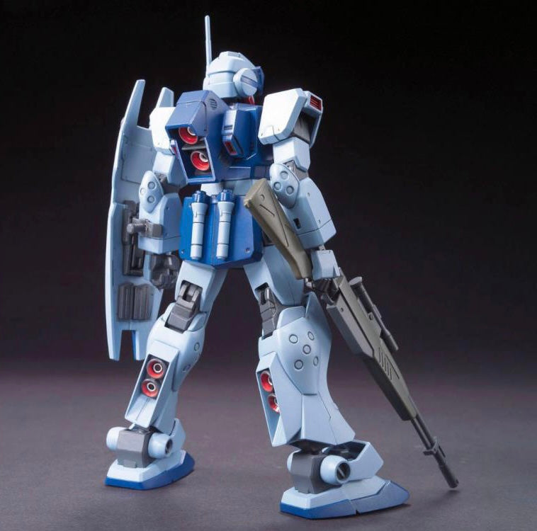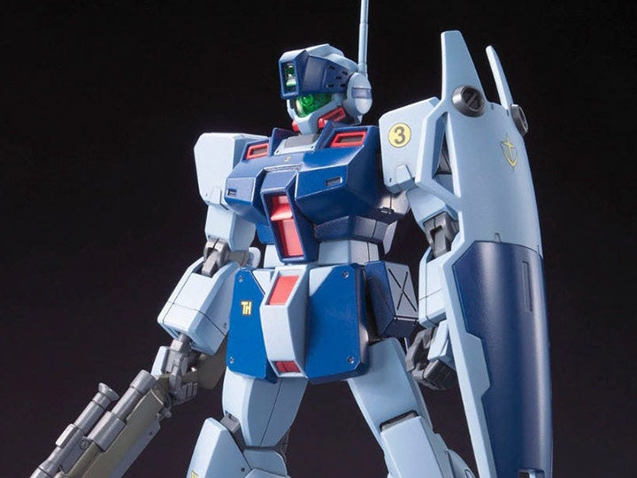 This model kit of the GM Sniper II, from Mobile Suit Gundam 0080, stands in 1/144 scale and becomes a fully articulated figure once built.