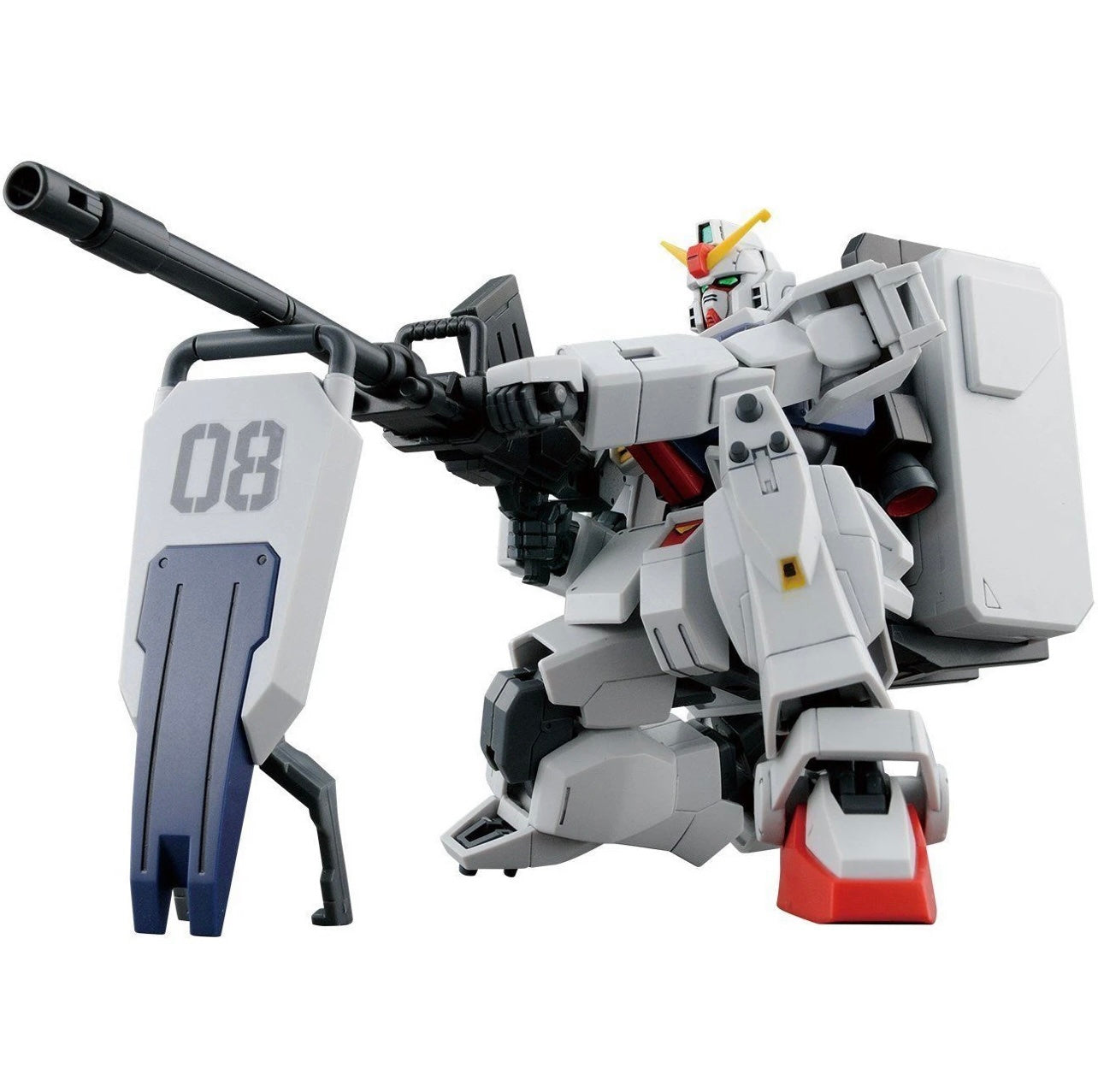 The Gundam Ground type featured in “The 08th MS Team” is now available in the latest HG format! This kit’s armor parts features new designs, recreating the Gundam Ground Type’s iconic asymmetrical chest Unit. Upgrading in the knee articulation and pull out gimmick in the shoulder makes it possible to recreate the firing pose seen in the opening credits with amazing accuracy! This upgrade in articulation allows the Gundam to kneel and assume other iconic poses. In addition to this, an abundance of armaments are included featuring a newly designed 180 mm (approx 7”) Cannon and other various weapons including the beam rifle not found in the original HGUC release. Set includes 180mm Cannon x1, Beam Rifle, 100 mm machine gun x1, Beam Saber x2, Weapon container rack x2, and shield x1. Runner x9. Foil sticker sheet x1. Marking sticker sheet x1. Instruction manual x1.