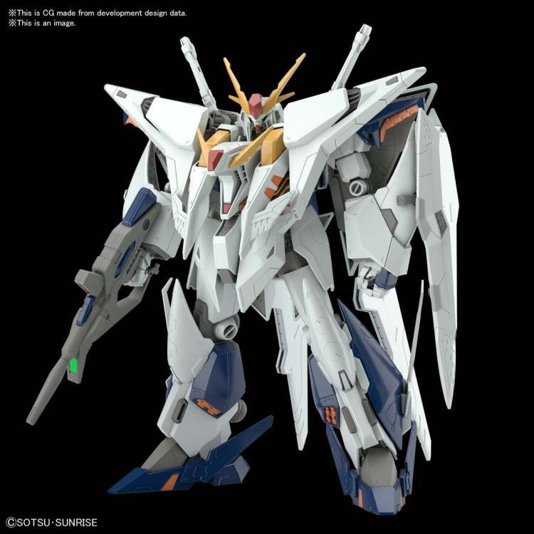 A gigantic two pack of the Xi Gundam and Penelope from "Mobile Suit Gundam Hathaway" is here! In addition to the 2 very large mobile suits, Funnel Missile firing effects made of clear parts and 12 missile parts are included, enabling epic displays where the two Mobile Suits are facing off. The frames that hold the effect parts in place have multiple attachment points and can be used to recreate the random trail patterns left by the Funnels. New parts with intricate details are included to recreate combat scenes. Set includes: 2 display bases, funnels, funnel effects, 2 sets of foil stickers, and a set of water decals. Disclaimer to retailer: Package size is oversized