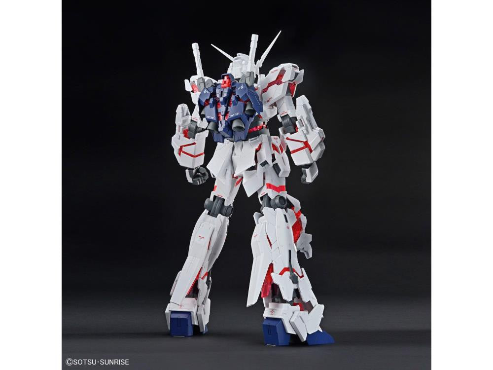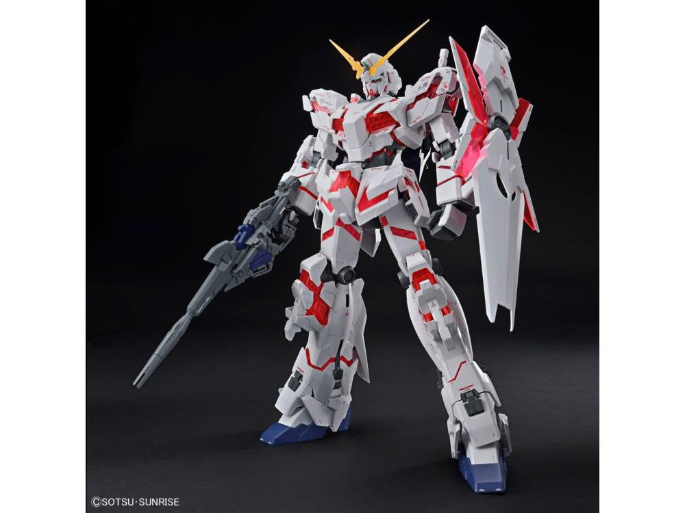 From the Gundam Unicorn series comes the 1/48 scale Unicorn Gundam! At over 17 inches tall this is taller than the Perfect Grade model! Clear red internal parts are utilized for the Psycho frame components and armor parts have been molded a certain way to create a shading effect at key points.