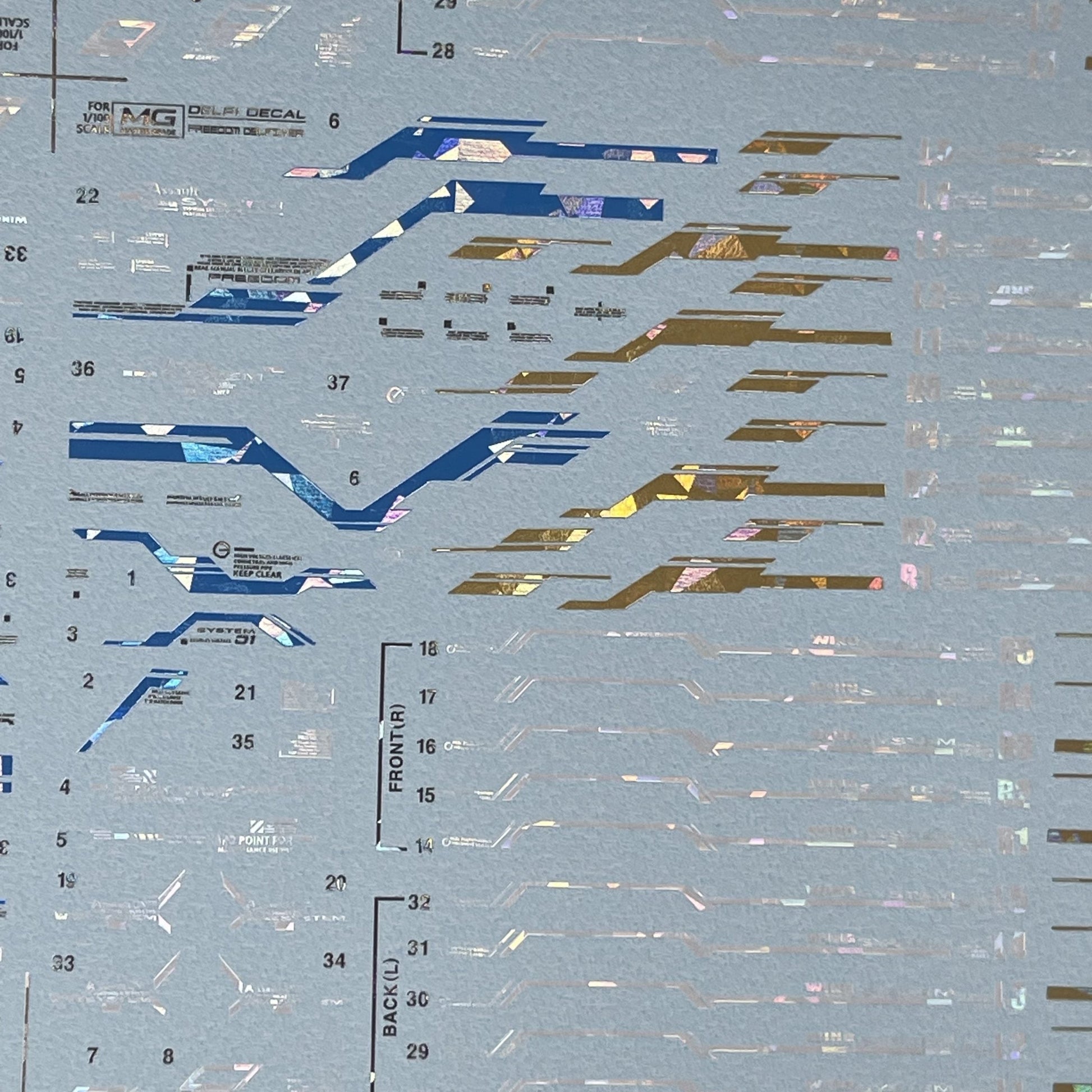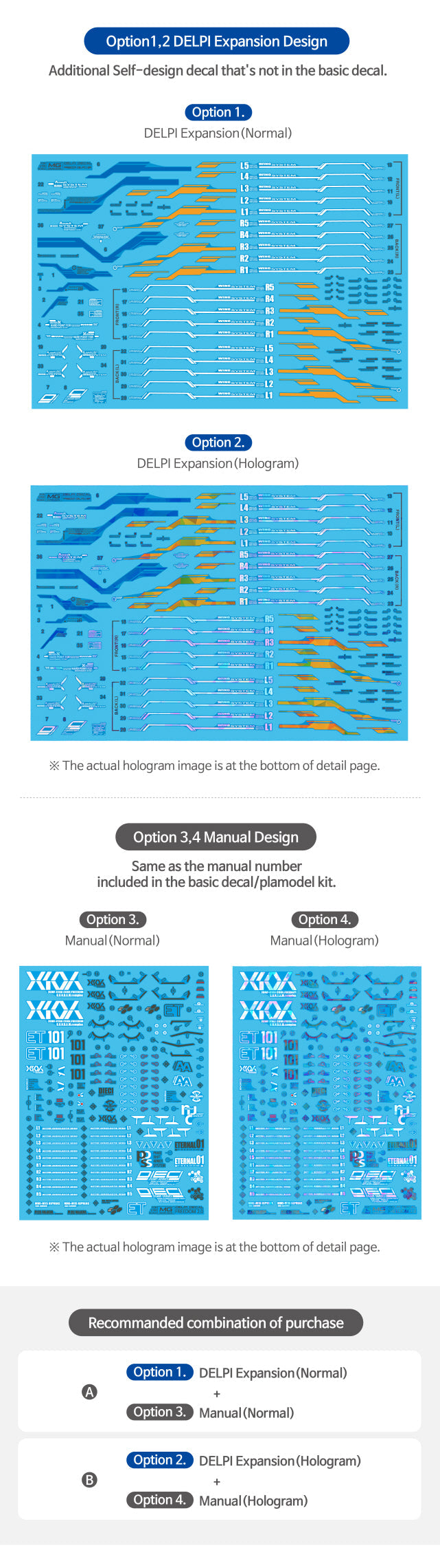 * Precautions for purchasing hologram products This product feels completely different from other products like Gold Hologram decal. It feels like a soft hologram because it is coated with a light hologram through additional processing. Please note that products with a smaller decal area (ex. rgScale, etc.) may look weaker in holographic feel.