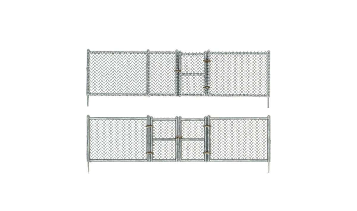 Add character to any scene with hand-painted and authentically weathered N scale Chain Link Fence. Easily assemble the Fence on your layout by aligning the modular pieces. Features gates, detailed hinges and planter pins for simple installation.