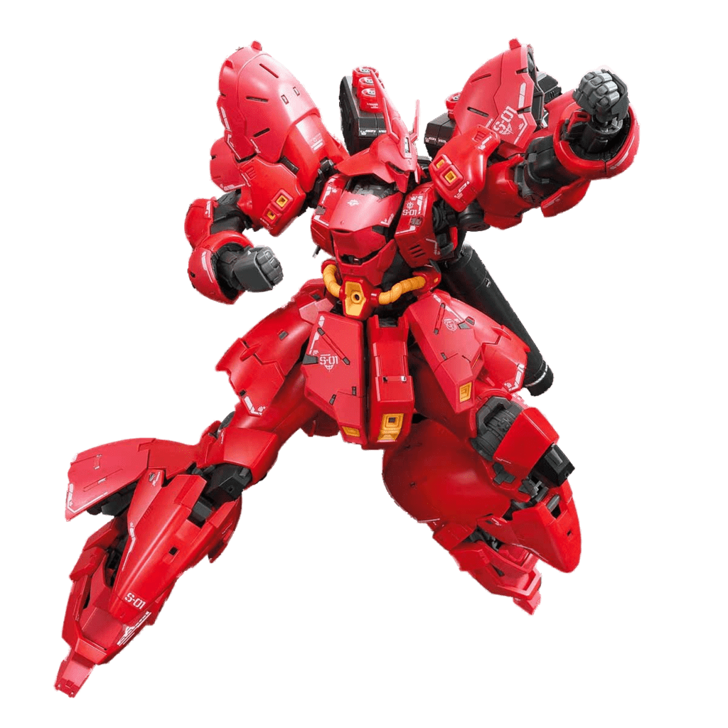 This is the Sazabi you've been waiting for: the RG realization of the mobile suit piloted by the Red Comet, Char Aznable himself, in "Mobile Suit Gundam: Char's Counterattack!" This Sazabi kit was created in pursuit of a realistic, detailed representation of the mobile suit from the series. Even simple armaments like the arm cylinders and funnels, as well as propulsion mechanisms like the verniers and backpack, have been faithfully recreated. The mechanisms in this kit and its high range of motion allow for the recreation of a variety of poses from the movie, despite being condensed into 1/144 small scale kit, thanks to the carefully crafted lifelike gimmicks for which the RG line is known. In addition to several hand parts, this kit includes all of the characteristic armament you'd expect.