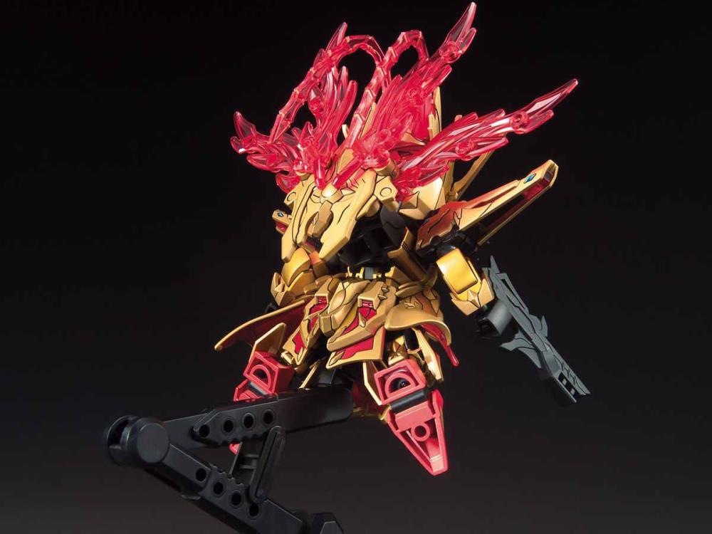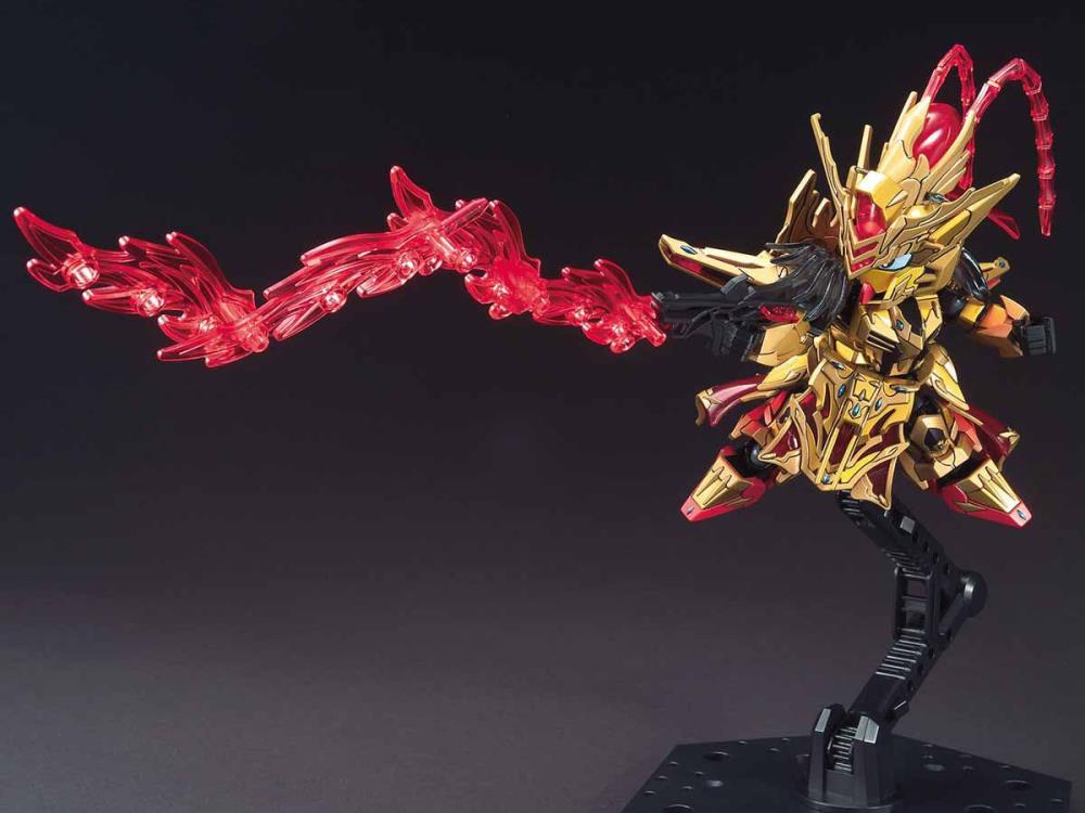The military planner of Red Tiger, Zhou Yu supports Sun Jian with his battle tactics. Based on the Gundam Akatsuki, he has a special flame thrower that can combine with the shield to produce flaming wings, also known as Shiranui Mode.