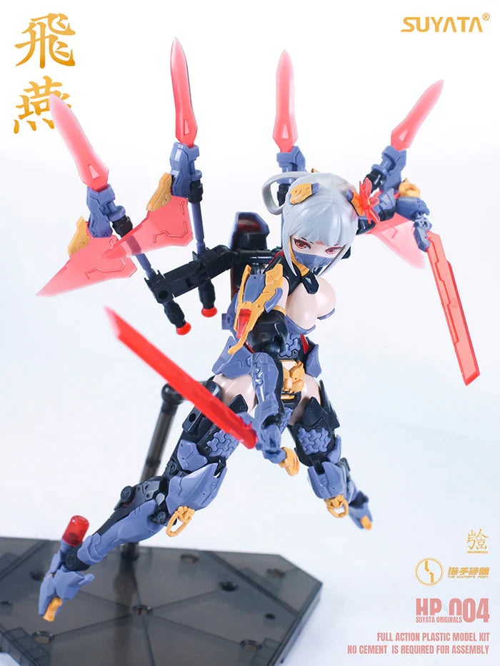 Hien joins Suyata's "The Hunter's Poem" action-figure kit lineup! This dashing warrior reminds us of the role of "Tomadan" from traditional Chinese opera. She's armed with a variety of weapons such as a huge ring, a spear, and a Blue Dragon Sword; several interchangeable faces are also included. Her weapon equipment can be transformed into a swallow-type combat support droid, too! Order her for your own collection today!