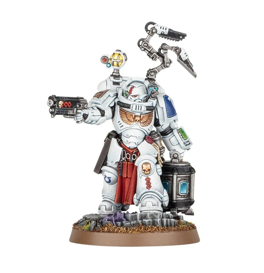 - 1x Apothecary Biologis: An experienced medical officer, the Biologis collects battlefield samples for analysis, guiding their fellow Space Marines in the best ways to kill enemies.