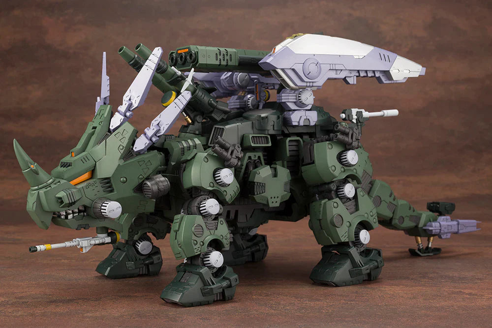 Captured by the Republic from the Zenebas Empire and later used as a test machine for new weapons, Green Horn AB from Zoids Mousou Senki joins the HMM Zoids lineup!